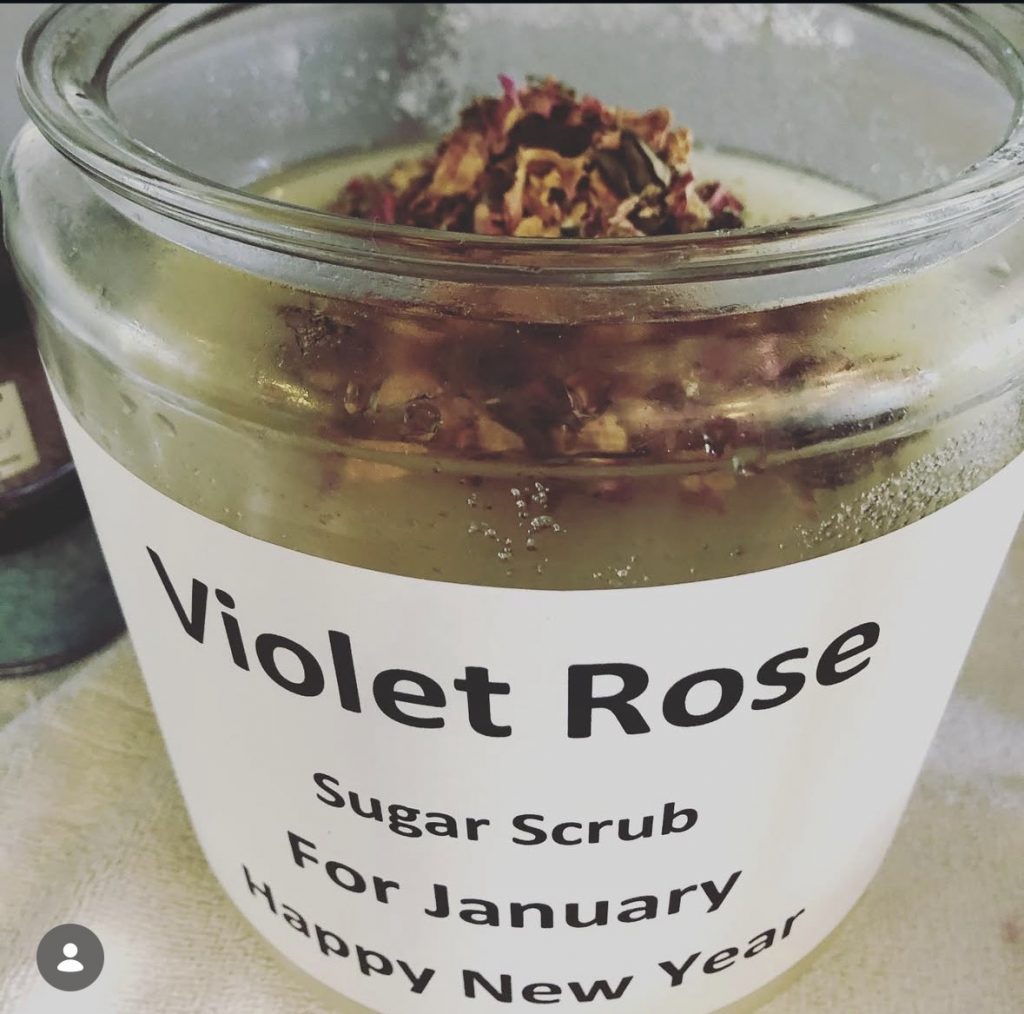 We make our own sugar scrub. We change it every month for our Classic Pedicure and this month we have Violet Rose Sugar Scrub.